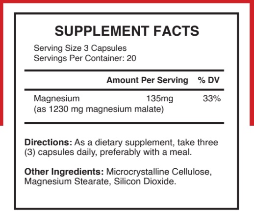 Malic acid is an acid naturally present in fruits, which is also present in most cells in the body. Magnesium is an essential cofactor for more than 300 enzymatic reactions in metabolism, ATP synthesis, and energy production.