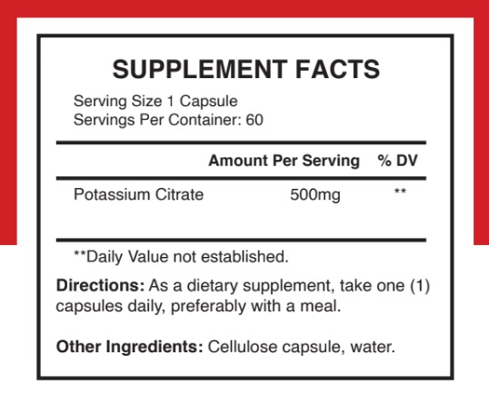POTASSIUM CITRATE is a supplement that is carefully crafted from a form of potassium, potassium citrate. Potassium citrate benefits the human body in a number of ways, but it is most widely taken because it supports cardiovascular health and energy production.